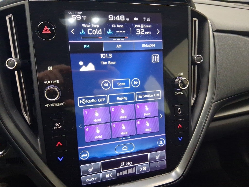 - Radio: Subaru STARLINK 11.6" Multimedia Plus Sys -inc: AM/FM stereo HD Radio, multi-touch gesture high resolution display screen, voice activated controls, Bluetooth audio streaming connectivity, Bluetooth hands-free phone connectivity, Bluetooth hands-free SMS text messaging connectivity (applicable w/compatible cell phone), Near Field Communication (NFC), iPod control capability, rear-vision camera display, SiriusXM All Access radio (4 months free trial/subscription required after), SiriusXM Travel Link (4 months free trial/subscription required after), smartphone integration: Android Auto, Apple CarPlay, STARLINK cloud applications, 6 speakers and roof mounted audio, satellite and connected services antenna